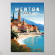 Conception de déplacement vectoriel Menton rétro. Menton est une ville sur la Côte d'Azur dans le sud-est de la France. Elle est connue pour ses plages et ses jardins comme le jardin de la Serre de la Madone.