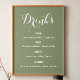 Panneau de menu de bar de boissons Bannière Affiche avec fond vert sauge pour mariage, dîner de répétition, douche de mariée, fiançailles ou toute occasion similaire. Découvrez notre collection de magasin ci-dessous pour les articles assortis. Si vous avez besoin d'une forme différente, style de papier, choisissez la même sous l'option de personnalisation de ce modèle,