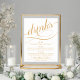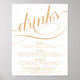 Affiche de menu de boissons de mariage à l'écriture élégante avec barre dorée. Personnalisez tous les textes et les graphiques pour qu'ils correspondent parfaitement à la palette de couleurs de votre événement.