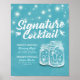 Modèles d'affiche de décoration de mariage de menu de boisson de cocktail de signature - Lettre élégante Script et couple vintage Mason Jars et lumières de chaîne sur fond floral bleu clair. Un design parfait pour votre grand jour. Tous les styles de texte, les couleurs, les tailles peuvent être modifiés pour répondre à vos besoins !