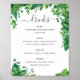 Poster Menu des boissons de mariage à la verdure à l'aqua