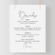 Ce panneau de menu des boissons de mariage avec calligraphie simple est parfait pour un mariage rustique. Le design simple et élégant présente une typographie script classique et fantaisie en noir et blanc.