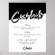 Affiche de menu de boissons moderne et chic pour une soirée noir et blanc. Ce design élégant et classe est créé avec un fond et un texte moitié noir et moitié blanc. Personnalisez cette affiche avec les boissons que vous servirez lors de votre soirée. Cette affiche est polyvalente et complétera presque toutes les soirées que vous organiserez. Elle est conçue pour coordonner avec notre collection de soirées noir et blanc.