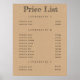 Poster Menu Matte du tarif Arrière - plan Kraft Imprimer