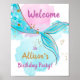 Poster Mermaid Aquarelle Queue Turquoise fille Anniversai