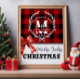 Poster Merry Christmas Monogram Wreath Buffalo Plaid