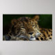 Alors que le Léopard d'Amour vit dans la même zone que le Tigre de Sibérie, il a reçu beaucoup moins d'attention de la part des médias et des organisations caritatives. Le léopard d'Amur est le plus rare de tous les grands chats, et il risque immédiatement de s'éteindre dans la nature. Elle souffre de la perte d’habitat et est particulièrement vulnérable aux catastrophes naturelles, comme le feu, en raison de la fragmentation importante de l’habitat. Les léopards d'Amour préfèrent vivre en territoire forestier, mais la majeure partie de son territoire restant est entourée de fermes et de villages, ce qui facilite le braconnage. Les projets russes de construction d'un oléoduc à travers le dernier habitat restant du léopard d'Amour ont été récemment redirigés vers une route plus sûre, sous la pression du WWF et d'autres organisations de l'environnement. Un plan de gestion de la population a été établi pour cette sous-espèce de léopard. Le PMP est un effort de coopération entre les zoos et d'autres installations d'élevage captif pour surveiller le statut et planifier la reproduction de la population captive actuelle. Le 16 avril 2007, une femelle a été abattue par des chasseurs, laissant seulement six femelles dans la nature.