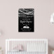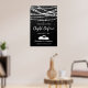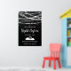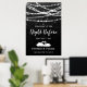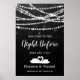 Pancarte de bienvenue pour la soirée de répétition de la veille - ce design présente des guirlandes lumineuses et des étoiles sur un fond texturé noir. Et en bas - Deux cygnes formant un cœur.