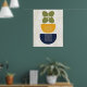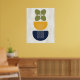 Poster Mi-siècle Moderne Abstrait Botanique Bleu Jaune
