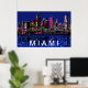 La ville de Miami, Floride couverte de graffitis. Dans cette version nocturne, l'horizon de la ville se reflète dans l'océan. Emmenez des oeuvres d'art de rue sur vos murs avec des villes recouvertes de graffitis.