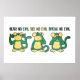 Trois Singes Sages - N'Entendez Pas De Mal, Ne Voyez Pas De Mal, Ne Parlez Pas De Mal. Avec trois mignonettes vert avec des graphiques en chimpanzé bleu et jaune / beige.