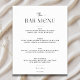 Améliorez votre barre de mariage avec notre menu minimaliste barre de script Cheers Mariage Signer. Cet élégant panneau présente une calligraphie élégante et un design propre, parfait pour afficher vos options de boisson. Personnalisez-le avec les détails de votre menu pour ajouter une touche unique. Idéal pour tout thème mariage, ce panneau allie sophistication et fonctionnalité, assurant à vos invités exactement ce qui est offert.