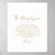 Cet or minimaliste le panneau de jeu est parfait pour un wedding shower simple. Le design romantique moderne présente une typographie classique d'or et de blanc associée à une calligraphie rustique mais élégante avec un style vintage lettré à la main. Personnalisable dans n'importe quelle couleur. Gardez le design simple et élégant, en l'état, ou personnalisez-le en ajoutant vos propres graphiques et artwork.