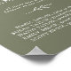 Cette affiche minimale de feuille vert foncé en mémoire affectueuse est parfaite pour un mariage élégant. Le design présente une silhouette de feuille de verdure simple en vert olive avec un style bohème montagnard minimaliste.