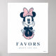 Add a touch of sweet, classic charm to your celebration with this minimalist Minnie Mouse Favors Sign! This design features a beautiful, retro-style illustration of Minnie Mouse sitting sweetly with her chin resting on her hands, complete with her signature pink bow. The clean, white background allows the design to pop, while the text uses elegant navy blue serif and script fonts that read "FAVORS" and "Please Take One". This sophisticated yet adorable sign is perfect for a baby shower, first birthday, or any special event needing a tasteful Disney accent to guide guests to the favors.