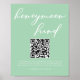 Cette affiche de fonds en lune de miel mariage vert menthe présente une typographie blanche chic pour une cérémonie de plein air de printemps. Un script simple et élégant sur des imprimés vert pastel massif tranquilles avec votre code qr pour une réception jardin.