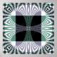 Mmirage infini de mandala à quatre pétales, palette couleur bleu-vert translucide, design moderne. Le motif fractal avec brillance en verre transforme l'espace et l'harmonise.