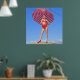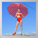 Image frappante ! Modèle bikini rétro avec parasol rayé rouge, debout sur la roche à la lumière du soleil clair. Voici le soleil est un texte modifiable. Ajoutez votre propre message ou supprimez-le. Poster physique et téléchargement numérique disponible.
