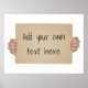 Mains tenant un panneau de protestation en carton vierge - ajoutez votre propre message à ce design modèle. Tout le texte peut être personnalisé.