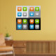 Enhance your space with this modern wall art poster featuring the vibrant glossy plus sign icon pattern. This unique print showcases the 3D buttons in four bright colors, perfect for a contemporary office, classroom, or dorm room. The geometric addition symbol offers a clean, tech-inspired aesthetic. Available in various sizes, it’s an ideal piece of large format room decor.