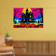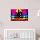Step into a Halloween that refuses to be quiet! This artwork takes the classic haunted graveyard scene and blasts it with the electrifying energy of a vintage comic book. A bold, gothic manor stands silhouetted against a hot pink sky, while a classic halftone moon beams down on a world of electric blue and vibrant purple. Friendly ghosts and grinning jack-o'-lanterns pop in brilliant, saturated color, creating a scene that's more festive than fearful. What makes this piece truly special is its perfect fusion of spooky subject matter with the fun, graphic style of 1960s Pop Art. It’s the ultimate statement piece for a high-energy Halloween party or for the modern decorator who believes the holiday should be celebrated with bold, unapologetic style. This isn't just wall art; it's a celebration of Halloween at its most fun and fearless.