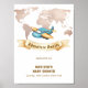 Poster Modern World Map Airplane Boy Baby Shower Welcome