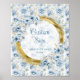 Poster Moderne bleu poussiéreux aquarelle fleurs or perso