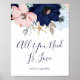 Ce panneau de signalisation de cupcake de mariage floral nautique moderne est parfait pour un mariage en croisière ou à la plage ou une douche de mariée. Le design fantaisiste présente des fleurs aquarelles roses blush et bleues marine avec des accents d'étoiles de mer dorées, lui donnant une ambiance balnéaire. Le panneau indique "tout ce dont vous avez besoin est l'amour et un cupcake".