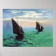 Affiche Monet Fishing Boats at Sea. Peinture à l'huile sur toile de 1868. Monet peint fréquemment les bateaux de pêche. Ce tableau de marina est l'une de ses premières oeuvres et montre son progrès vers l'impressionnisme. Trois bateaux de pêche naviguent au-dessus des vagues vertes de mer avec des nuages tôt le matin flottant au-dessus. Un joli cadeau pour les amateurs de Claude Monet, de paysages océaniques et de peintures de bateaux de pêche.