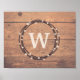 Monogramme design pour Noël avec couronne et décoration de neige sur arrière - plan en bois rustique
