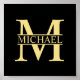 Monogramme personnalisé et cadeaux de nom avec monogramme d'or personnalisé dans le style de police serif classique avec boîte de nom au milieu du monogramme sur arrière - plan noir. Parfait comme décors de maison, cadeaux de ménage, cadeaux de vacances pour la famille, les jeunes mariés et plus. Veuillez noter : Les détails de la feuille sont simulés dans l'illustration. Il n'y aura pas de métal sur ce produit.