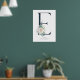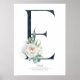 Poster Monogramme lettre E Fleurs blanches et feuillage