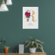 Poster Monogramme Lettre R Fleurs Rouge Bourgogne et Or