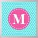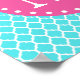Chic, girly, tendance, treillis marocain motif en bleu et blanc clair avec un cadre étiquette en forme de cercle rose avec un modèle monogramme personnalisable.