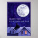 I Love You to the Moon and Back Moon Regarder présente notre art original créé par notre talentueux illustrateur pour enfants, Traci Van Wagoner, d'un père, d'un enfant et d'un chien sur un toit ou leur maison en regardant la pleine lune se lever dans le ciel nocturne avec les mots : I Love You to the Moon and Back. Envoyez à quelqu'un que vous aimez un beau rappel aujourd'hui.