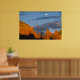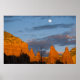 Un coucher de soleil de Sedona apporte la lumière droite pour rendre les Roches Rouges des Buttes jumelles (prononcez "beautés") étonnamment brillantes. Avec le dégagement des nuages de tempête, une lune montante est majestueusement révélée. Ce cliché vraiment magique sera superbe sur n'importe quel mur !