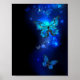 blue, glowing butterflies morpho on a dark ground. Morphine. Design avec des babouins.