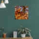 Cette affiche décorative présente un motif abstrait géométrique de mosaïques pentagone cinq côtés dans des couleurs automnales brillantes de rouge, orange, marron, jaune, or, bleu, gris, noir et blanc.