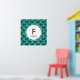 Une affiche conçue avec un motif répétitif avec un mignon chien souriant avec des oreilles disgracieuses et un os de chien. Arrière - plan vert. Un cercle blanc superposé avec une initiale monogramme et un nom à l'intérieur. Mignonne affiche pour un coin animal ou une chambre.