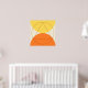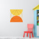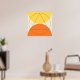 Un design d'art moderne géométrique abstrait de cercles et de triangles dans les tons orange et jaune.