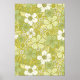 Cette affiche présente des fleurs et des feuilles dans les tons blanc, vert clair et jaune pâle.
