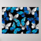 Poster Motif sans couleur foncée avec papillons bleus Mor