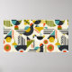 Poster Motif sans couture avec oiseaux stylisés en bauh r