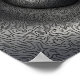 La composition comporte une série de lignes pivotantes et entrelacées qui créent un motif abstrait fascinant, évoquant la profondeur et la fluidité dans un contexte contrasté.