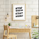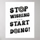 Ce design audacieux et dynamique vous encourage à transformer vos rêves en réalité avec son message "Stop Wishing, Start Doing !". La police ludique et d'inspiration rétro avec des cercles comme des cibles ajoute une ambiance énergique et déterminée, parfaite pour tout espace qui a besoin d'une dose de motivation. Un mélange amusant de fantaisie et de conduite, c’est un rappel quotidien de continuer à avancer. Parfait pour un bureau à domicile ou un espace d'entraînement, cette impression apporte une touche de motivation à votre environnement. Idéal pour un ami ou un collègue qui se lance dans un nouveau défi ou qui a besoin de cette poussée supplémentaire!