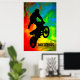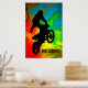 L'action sportive et l'énergie des athlètes de motocross sont capturées dans des silhouettes de figures d'action démontrant des tours extrêmes et des cascades sur leurs motos. Les peintures numériques et les illustrations de ces ados et jeunes hommes comprennent des arrière - plans de couleurs vives et vives, des éclaboussures et des éclats de lumière pour souligner l'action. Ils se montrent aussi dans des scènes grungy et huppées hors route où les concurrents gagnent leurs cris de rue montrant leurs compétences en motocross.