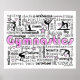 Gymnastique désigne l'affiche avec silhouettes de gymnastique et les mots liés à la gymnastique. Des mots comme balai, coffre, barres inégales, plancher, tumer, coller, craie, équipe, tuck, ressort, marche, et bien plus encore! ©gollygirls.com