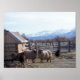 Moutons tout laineux pour l'hiver avec les montagnes de Ruby enneigées dans l'arrière - plan. Les photographies sont transformées par la manipulation numérique pour donner un aspect artistique plus peint. Du crépuscule d'hiver et du lever du soleil d'été, ce sont des images paisibles de la vie dans le ranch.