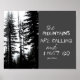 poster John Muir quote the mountains are calling chaklboard style text on charcoal grey with black and white original nature photograph of mountain pines Wall art for decor in home or office. Original photography copyright Ann Powell all rights reserved.