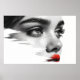 Cette carte postale capture un magnifique portrait monochrome d'une femme, ses yeux une porte d'entrée vers l'âme, accentuée par des lèvres rouges audacieuses qui brisent le niveau de gris. C'est une célébration de la beauté classique et de l'art contemporain, un témoignage de l'allure intemporelle de la simplicité dans un monde coloré de complexité. Parfait pour les amateurs d'art et les collectionneurs qui apprécient le pouvoir de la narration visuelle.